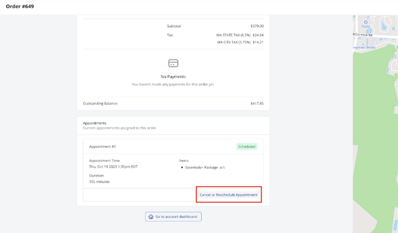 You’ll be taken to the Order Status page. Scroll to the bottom of that page and click “Cancel or Reschedule Appointment.”