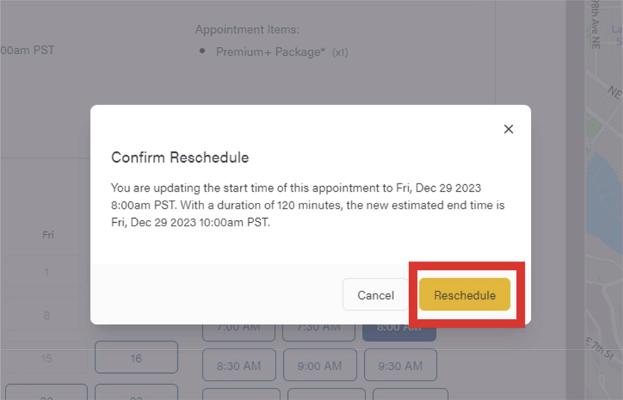 Once you’ve selected the new date and time for your appointment, you will be asked to confirm your changes, simply click Reschedule.